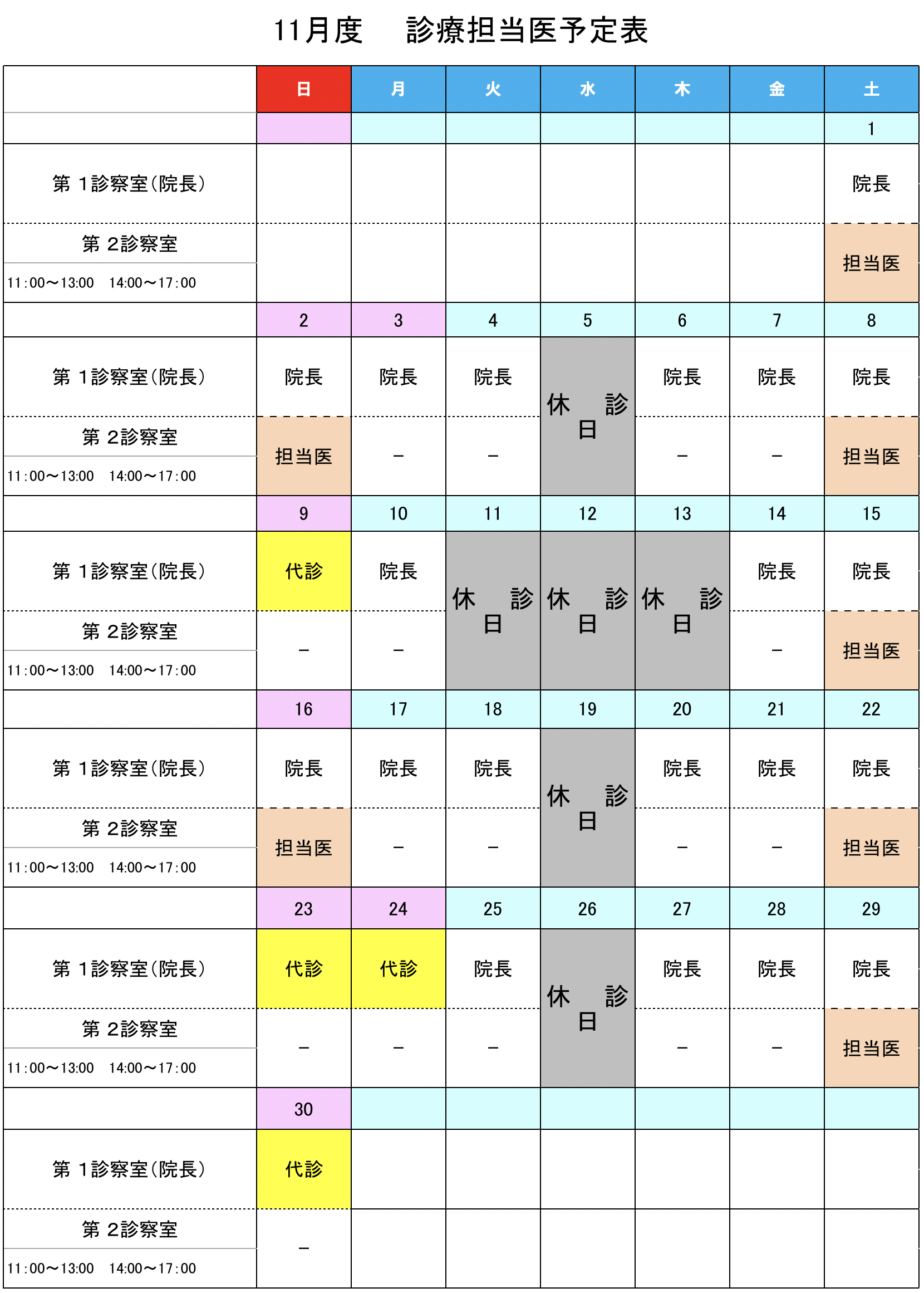 ※土曜日、日曜日は時間帯により医師2名による2診制度を